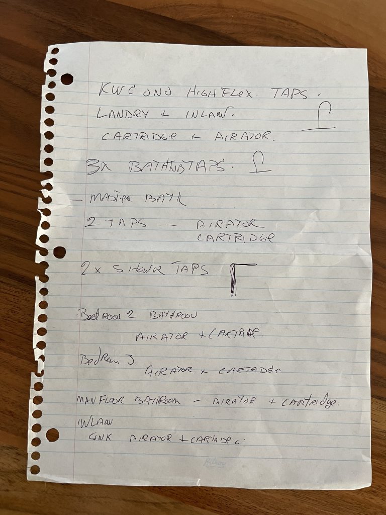 Notes from plumber